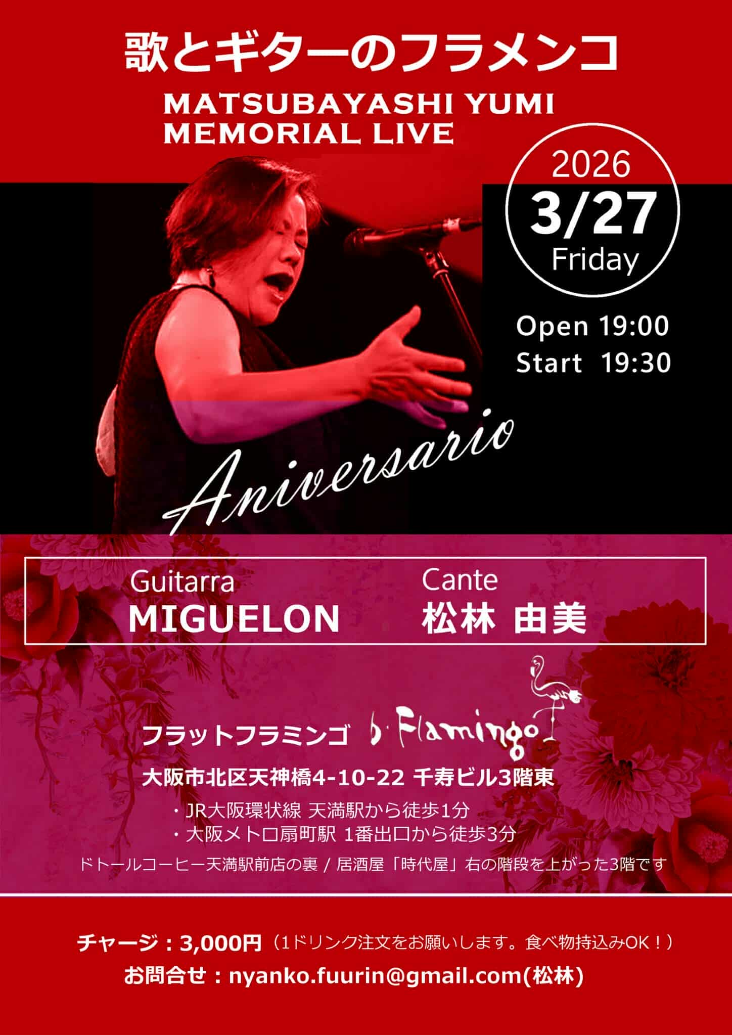 OPEN 19:00 / START 19:30 / CHARGE: ¥3,000